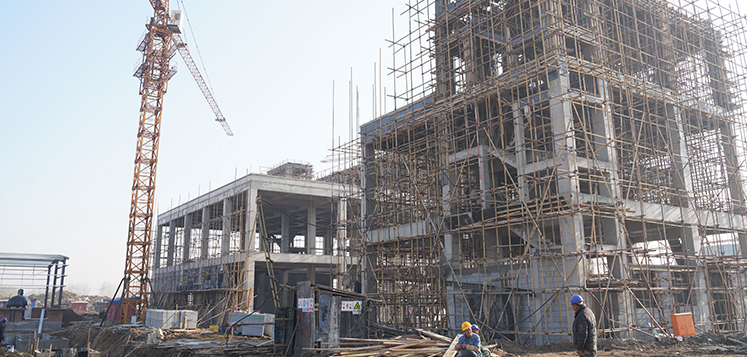 2020年10月,钼酸铵、高纯车间在同时进行钢结构安装及土建施工。